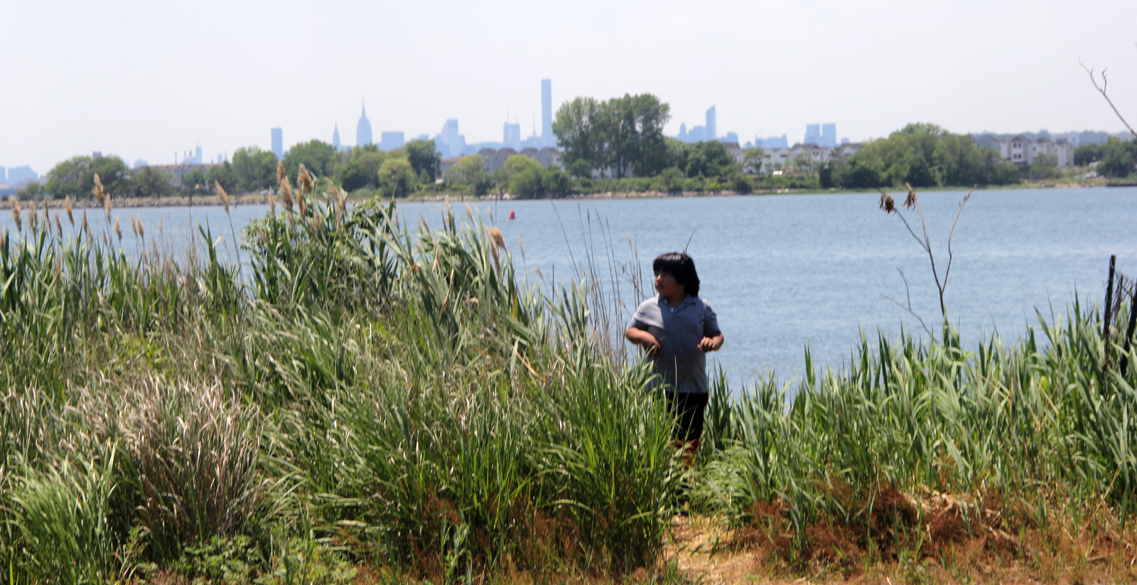 , June 2016. Manhattan skyline in the distance (in the center, a new "pencil" luxury condominium skyscraper that dwarfs the Empire State Building).