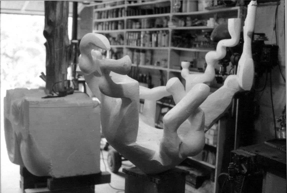Sculptures of Bill Karp in his studio, Yonkers NY, 1972.