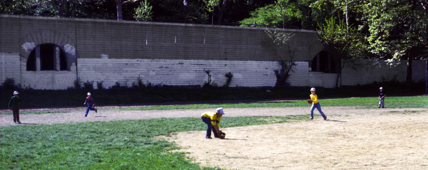 , lower level: Ball field at 105th Street as it looked in 1986, pretty much in its original state: all natural.