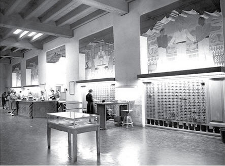 employed by the WPA, carved vigas and corbel brackets throughout the library
